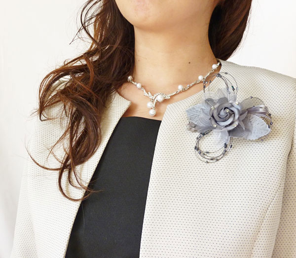 コサージュは必ず必要なものではありませんが、ひとつあるだけで華やいだ雰囲気になります。スーツが同じでも、コサージュを変えるだけで雰囲気が大きく変わります。