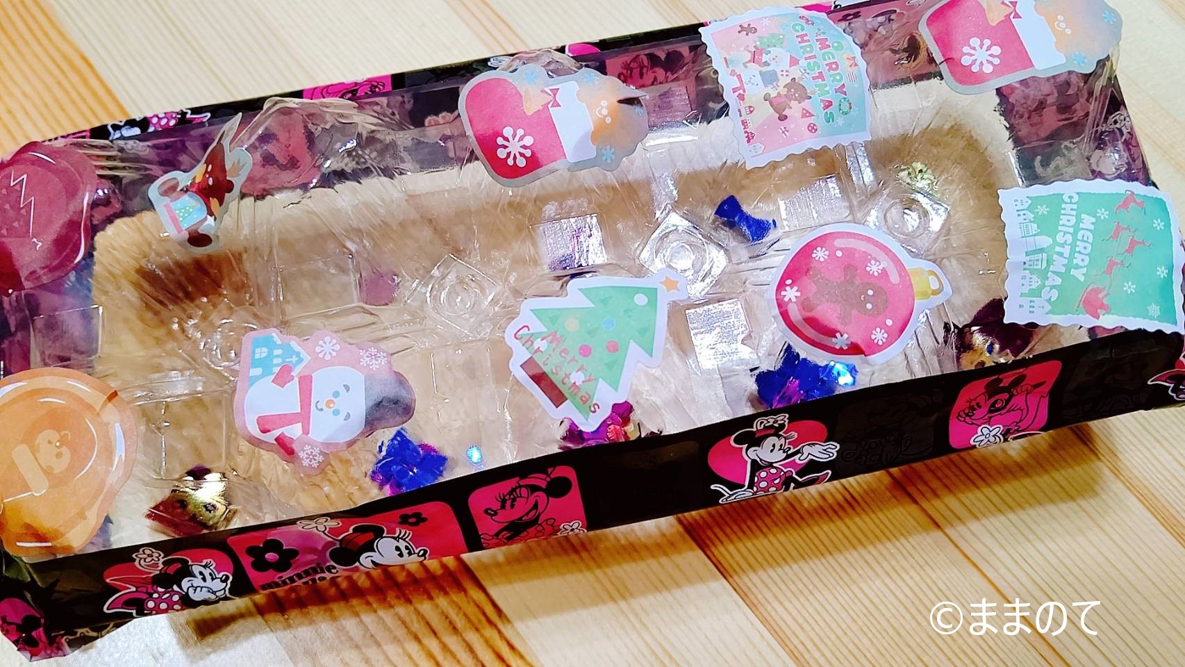 水とキラキラ光るセロハン、ビー玉を入れています。見た目もとても素敵ですね、容器の中に水を入れることで、ビーズやセロハンがひらひらゆらゆら動く様子が見られます。水が漏れないよう、しっかりフタをしめてくださいね。