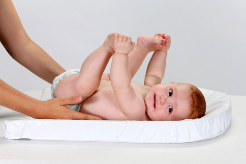 おむつ替えのときは、両足持ち上げたり強く引っ張ったりせずに、左右の足裏をくっつけて、優しく持ち上げるようにおむつを替えてあげましょう。力任せに赤ちゃんの足を引っ張るなど、雑なおむつ交換をしているママは要注意です。