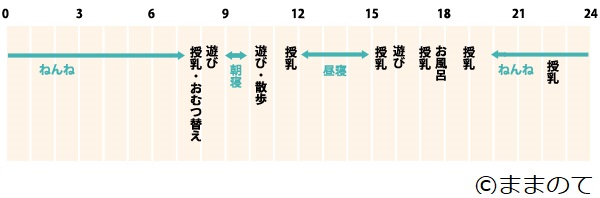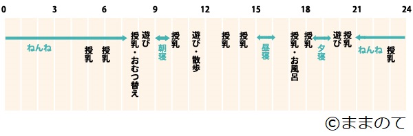お昼寝が3回の赤ちゃんのタイムスケジュール