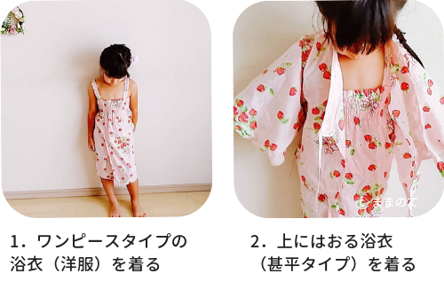 1.スカート部分になる、ワンピースタイプなどの浴衣を着る