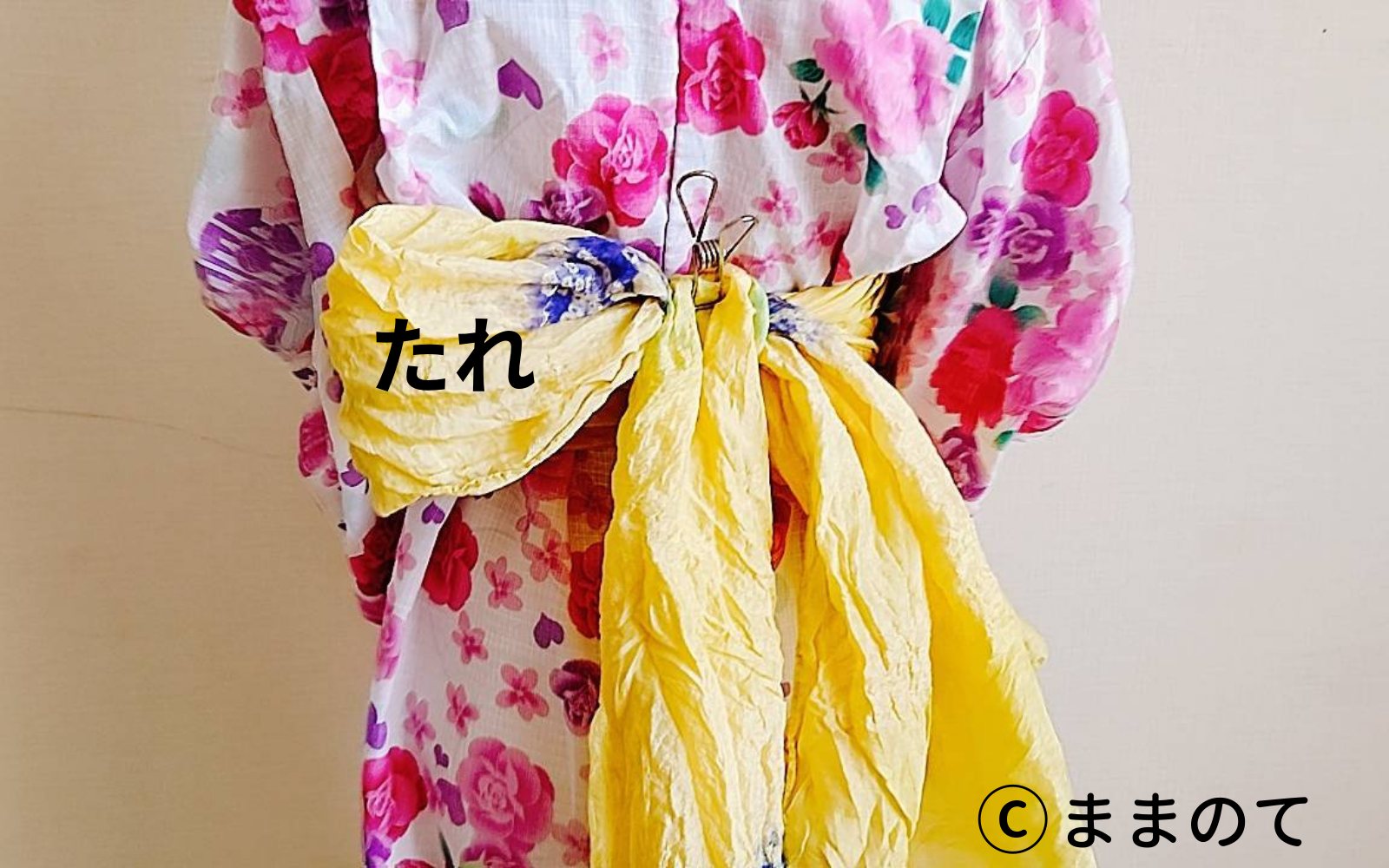 13.前の面を見て、兵児帯から腰紐が出ていないか確認して完成