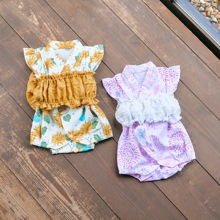 上衣とワンピースが分かれている浴衣ドレスのワンピースタイプです。洋服を着せるように浴衣を着せることができますよ。ワンピースなので裾がはだけることがなく、普通の浴衣より着崩れる心配もありません。トイレも行きやすいでしょう。