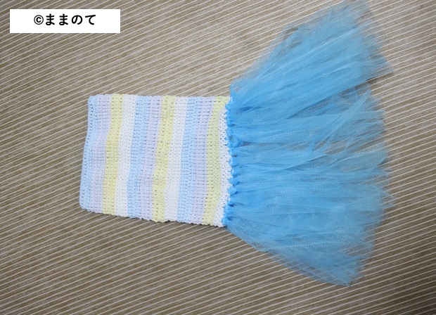 実際に作った作品がこちらです。ヘアバンドとネットの色をあわせてかわいいドレスが出来上がりました。プチプラで簡単にドレスが作れてしまうとは驚きですね。
