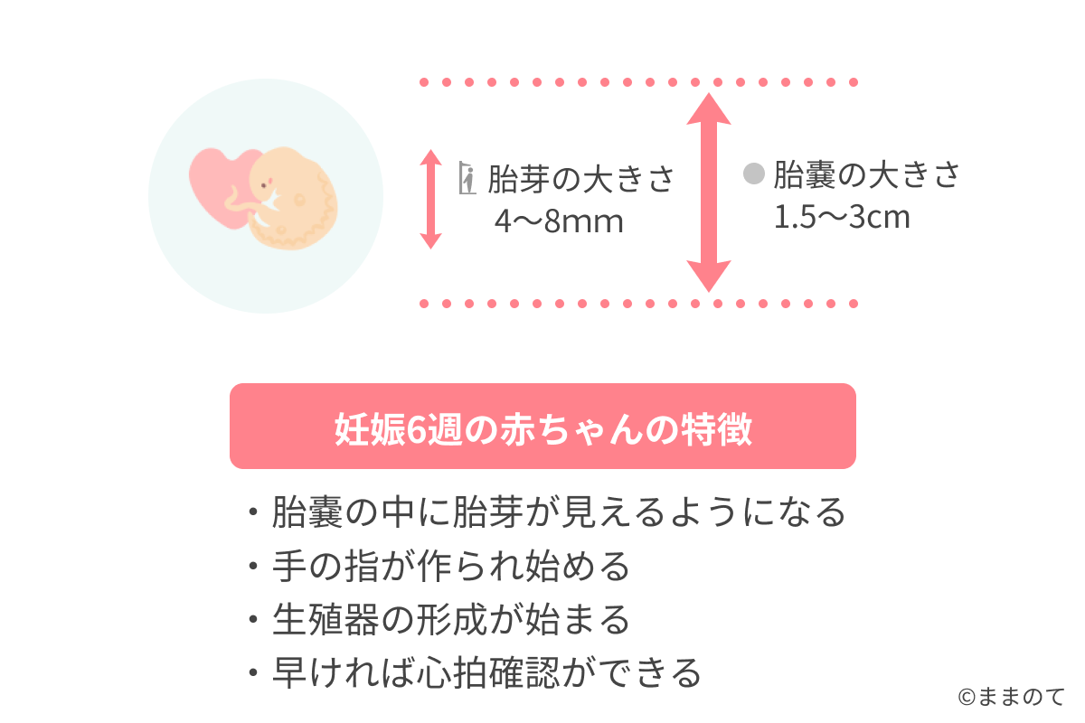 妊娠6週ははじめて赤ちゃんの心拍が確認できたり、つわりの症状がだんだんとあらわれたりする時期であり、妊娠期間中におけるひとつのターニングポイントといえるでしょう。