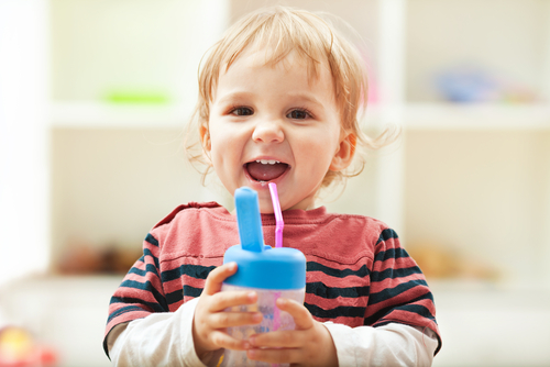 ストローを使うときには、慣れないうちはそばで見ていてあげましょう。突然飲み物を吸い込んで、むせてしまうことがあるかもしれません。