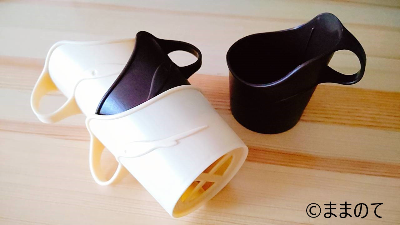 一般的な大きさの紙コップがちょうど入るカップホルダーは、コーヒーなどの熱い飲み物を入れるときに適しています。モノトーンデザインなので、一般的な白の紙コップでもおしゃれに見えますよ。インスタントスープなどにもおすすめです。