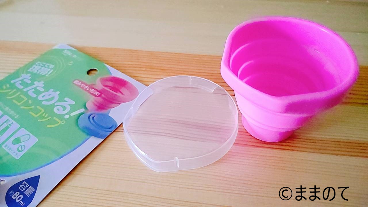 コンパクトに折りたたむことができる、容量が80mLのシリコンカップです。ふたが付いているので、衛生面でも安心でしょう。セリアにはピンクとブルーがありますよ。