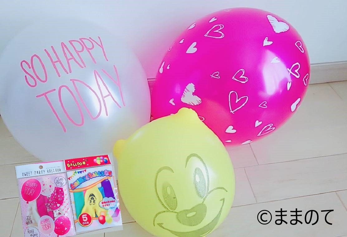 ダイソーやセリアなどの100均では、パーティーを盛り上げてくれるデザインの風船がたくさん販売されていますよ。スタンダードなタイプと組み合わせてアレンジしてみても良いでしょう。風船を使って部屋を飾り付け、特別な日をさらに楽しく過ごせると良いですね。
