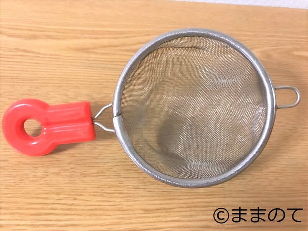 裏ごし器は食材をなめらかにできるので、離乳食初期にとても重宝します。裏ごしする量は少量のため、大きな裏ごし器ではなく100均のみそこしや茶こしで代用すると良いでしょう。裏ごし器は持ち手があるものがおすすめです。たとえば、しらすを調理するとき、茶こしで塩抜きしたあとそのまま裏ごしできるので、調理がスムーズですよ。