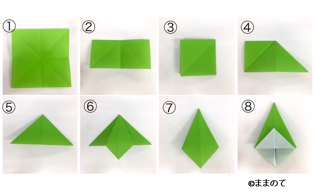 小さなクリスマスツリーの折り方は以下のとおりです。