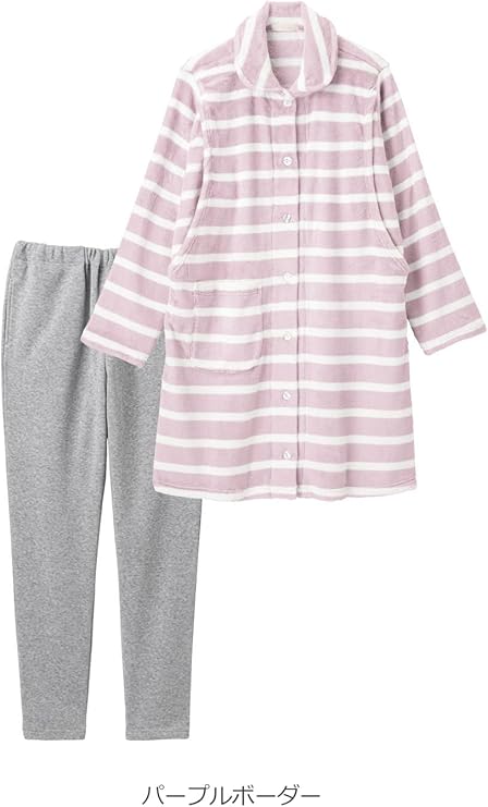 【fairy】フリース&裏起毛ボーダー授乳口付きマタニティパジャマ