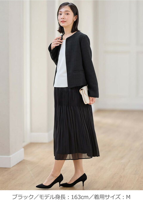 オフィスだけではなく、お宮参りや七五三、卒入園・卒入学でも活躍するきれいめジョーゼットのフレアスカートです。オールシーズンで使いやすく、伸縮性にも富んでいるので産前産後はもちろん、さまざまなシーンで長く活躍する1枚が欲しいときにおすすめです。