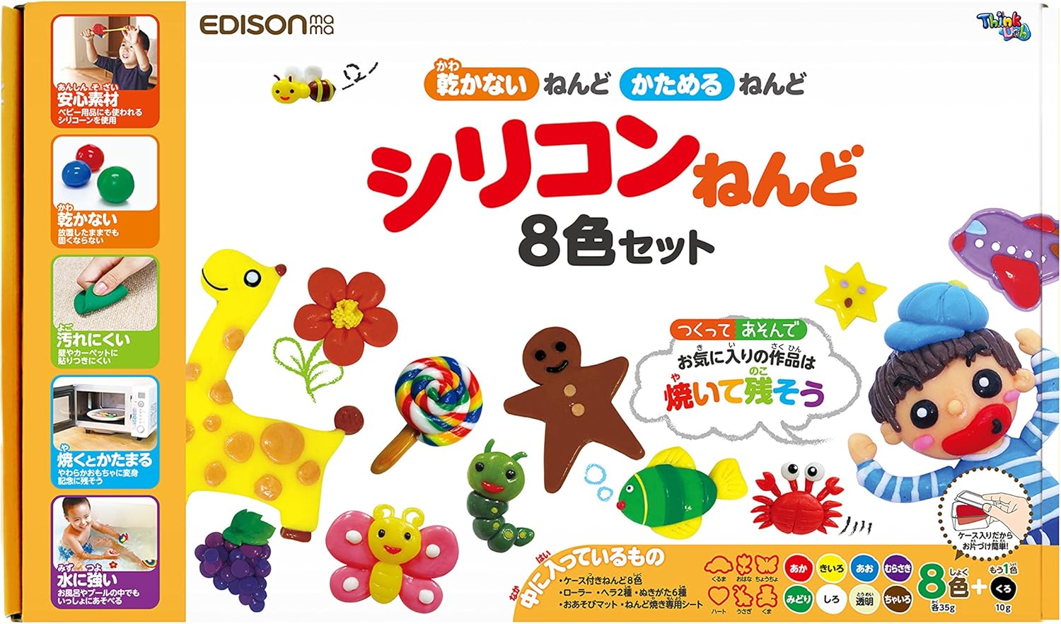 エジソンのシリコンねんどは、赤ちゃんの哺乳瓶の乳首にも使われている安全性の高いシリコン素材でできた粘土です。乾燥しても固くならないので、いつでもやわらかい状態で遊べます。オーブンで焼くと粘土が固まる仕組みがおもしろいと、口コミでも人気です。記念に残したい作品は、オーブンで焼いて部屋に飾っておきたいですね。