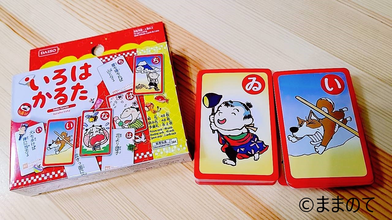 ダイソーのいろはかるたは、絵札、読み札ともに48枚と予備札が2枚入ったセットです。「花より団子」や「犬も歩けば棒に当たる」といったことわざをモチーフにしたものが多く、日本の文化を学ぶこともできるでしょう。レトロで親しみやすいイラストが特徴ですよ。