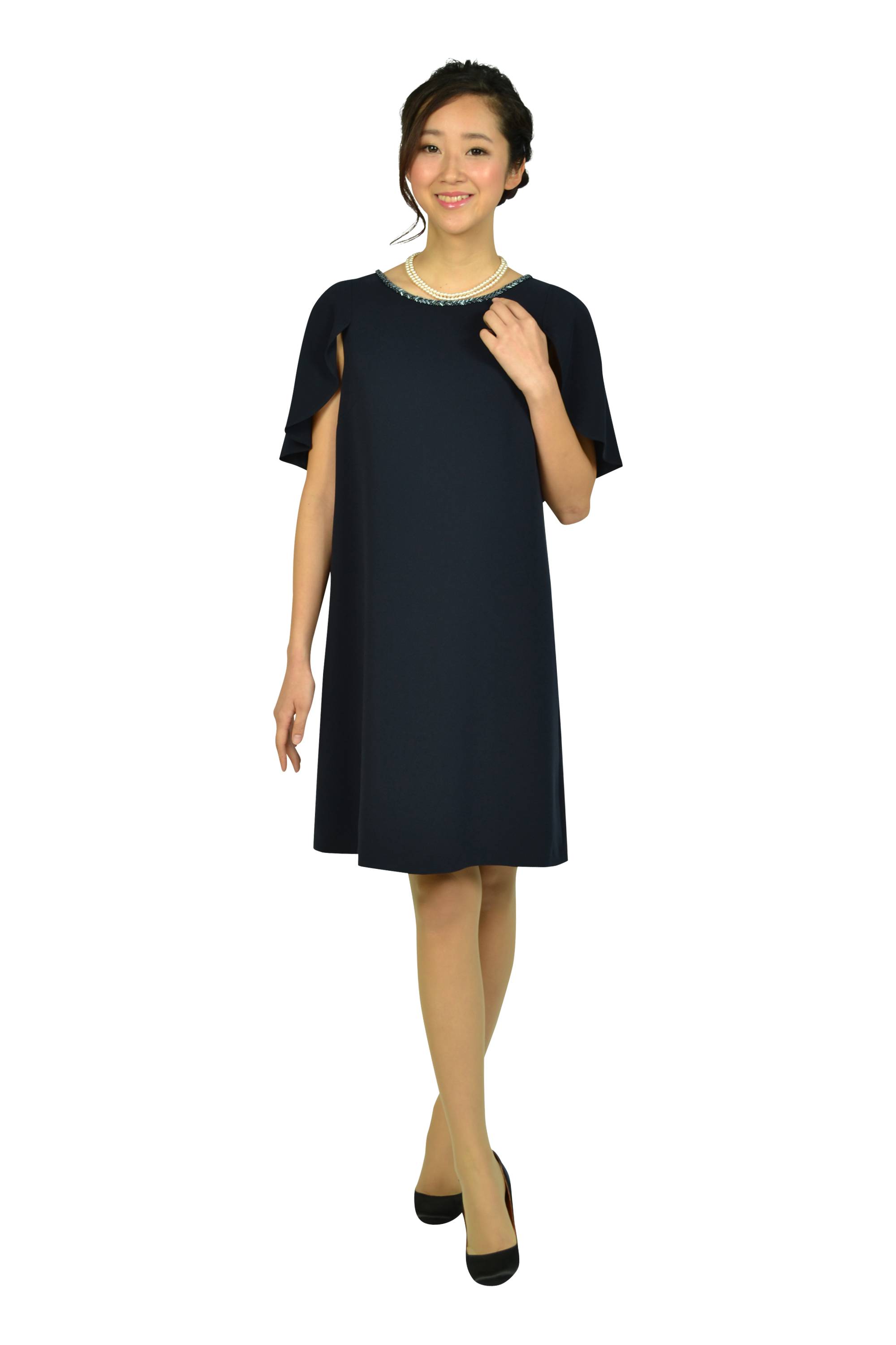 ブランドドレスが最長1週間までレンタルできる「おしゃれコンシャス」ではさまざまなドレスを扱っています。その中で人気の組曲のケープ袖ドレスは、トレンド感を取り入れつつ、しっとりとした質感のジョーゼット生地をぜいたくに使い、大人の落ち着きも残しています。