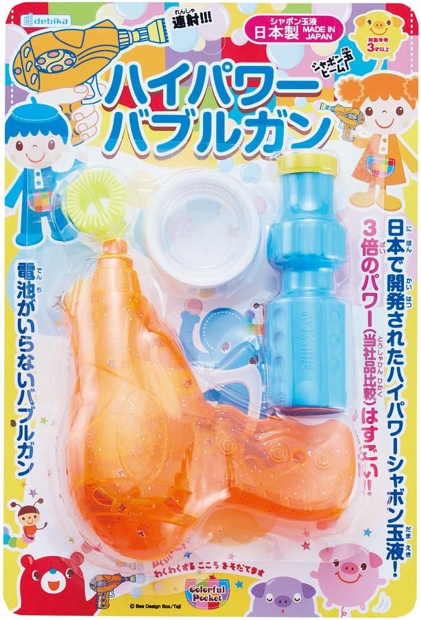 幼児~小学校低学年の子どもへ送りたいおすすめプレゼントが、トリガーを引くだけでシャボン玉が次々にでてくるおもちゃです。子ども心をくすぐる見た目で、持っているだけで人気者になれそうですね。シャボン玉液付きなので、すぐ遊べるのもポイントです。
