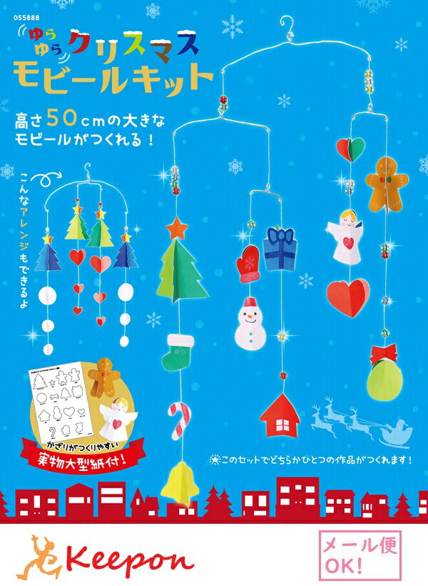 色紙をクリスマスツリーやジンジャーブレッドマン、雪だるまなどの型にカットしてつくるクリスマスモビールキットです。アレンジ次第で形を変えられ、親子で一緒に工作を楽しめます。