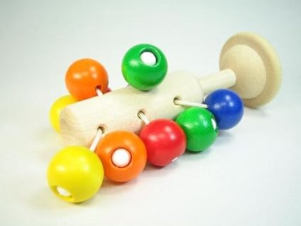 パステルカラーがかわいいラトルです。赤ちゃんの小さな手でも持ちやすいサイズ感で、中には木製のボールが2個入っていて転がしたり振ったりするたびにきれいな音を奏でます。 ポップなカラーリングなのでご出産祝いにもぴったりですね。