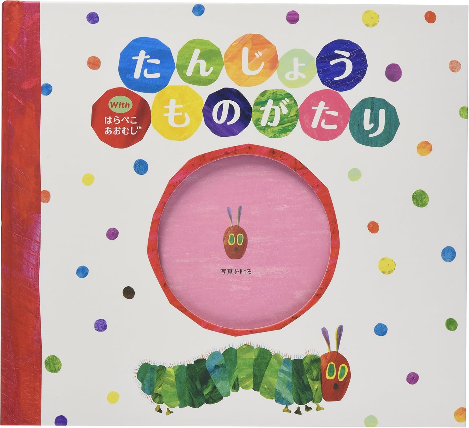 エコー写真から貼ることができ、写真13枚の成長記録がメッセージとともに残せる「仕掛け絵本アルバム」です。はらぺこあおむしのストーリーに合わせて写真を貼っていくと絵本のようなアルバムが完成します。