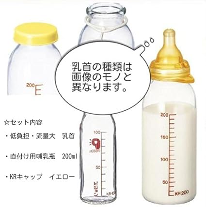 主に病産院で使用される、哺乳瓶とちくび、キャップがセットになったものです。容量は200mLのほか、100mLのものがあります。ちくびの種類は、吸う力が弱い赤ちゃんでもしっかりと飲める「低負担・流量大」のほか、乳頭のサイズが小さくて飲みやすい「低体重児用」、一般的な新生児に向いている「一般新生児用」の全部で3種類があります。一番小さい目盛りが10mLなので、細かい分量まで計って調乳することができますね。