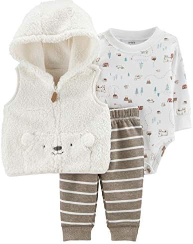 予算内でボリュームのあるギフトを贈りたいなら、ふわふわとしたパイル地のくまさんベストがついたおでかけ用上下3点セットがおすすめです。どれも単体で着られるシンプルなデザインなので、ママの好みがわからなくても贈りやすいですよ。