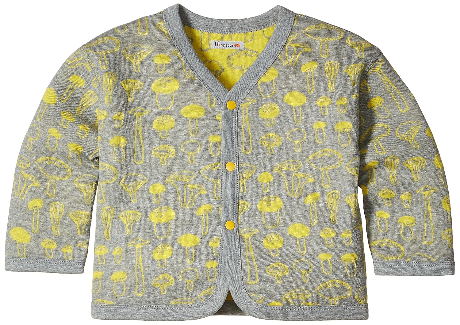 ユニセックスのニットカーディガンです。1枚あると重宝するカーディガンは贈り物にぴったりですよ。北欧のラッキーアイテムであるきのこが描かれており、グレーとイエローのリバーシブルになっているため、気分やコーディネートにあわせて使えるのもおすすめのポイントです。