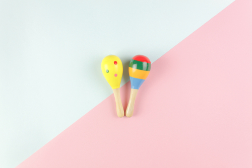 手に持って振るだけでシャカシャカ音が鳴るマラカスは、赤ちゃんのころから楽しめる楽器のひとつです。家庭にある材料で気軽に作れるので、ぜひ試してみてくださいね。