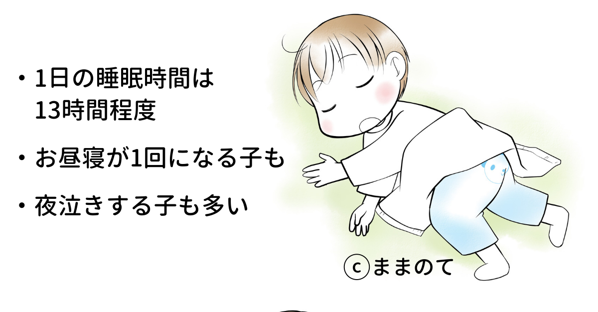 睡眠のリズムには個人差がありますが、昼夜のリズムがしっかりとでき、まとまって眠ることができるようになります。早起きの習慣をつけるなど、生活リズムを整えるように心がけてみてくださいね。
