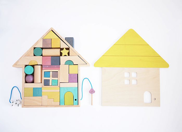 お家の形の積み木セット。こんなオシャレな積み木があったのかと、思わず口にしたくなるような積み木です。gg*という温かい雰囲気が魅力の、国内発の木の玩具ブランドのもので、遊び心がたくさん詰まっています。