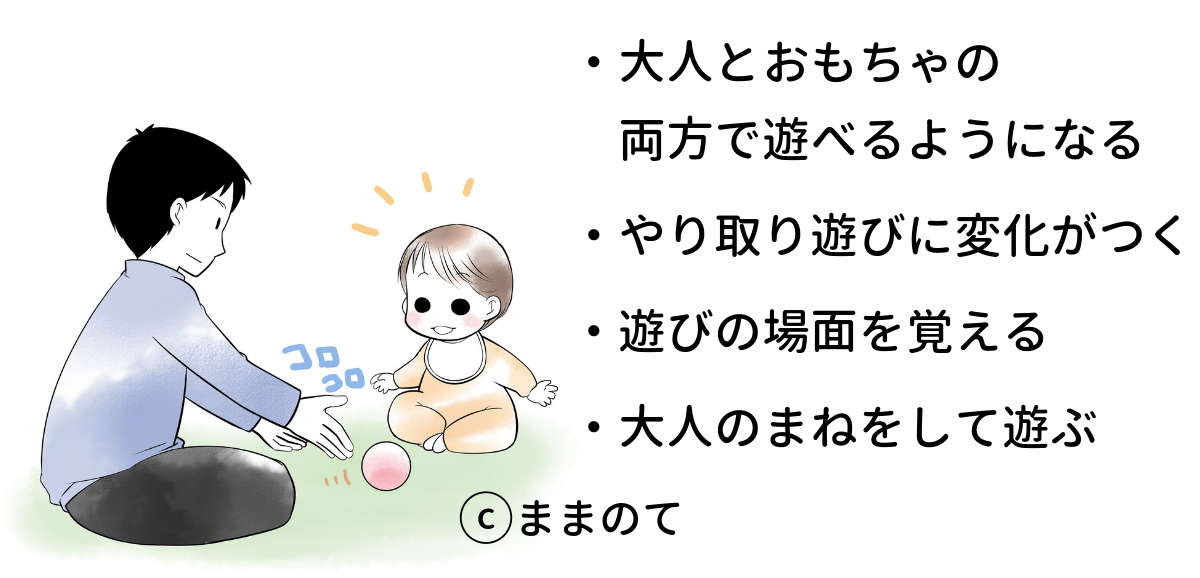 大人のまねをするようにもなるため、一緒にぱちぱちと拍手をしたり、向かい合ってあっぷっぷをしたりするのもおすすめです。