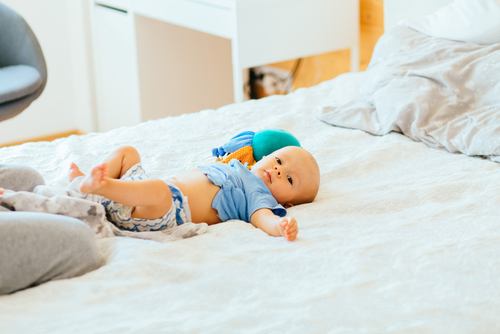 赤ちゃんの服の準備中や、ママが服を脱いでいるあいだ、赤ちゃんには備え付けのベビーベッドなど安全な場所で待っていてもらうと良いですね。