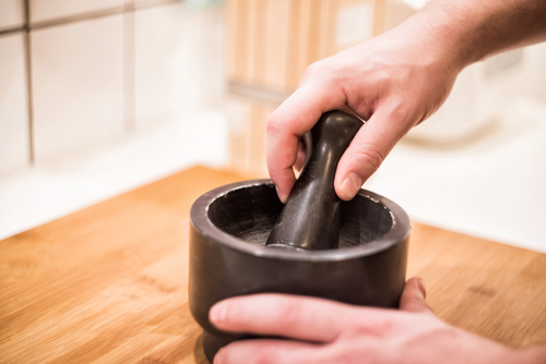 すり鉢とすりこぎを使ってすりつぶす方法です。少しずつすりつぶしていくため、やわらかさの調節がしやすいですよ。すりばちでつぶす方法は、おかゆ以外にも白身魚や野菜のペーストを作るときに使えます。