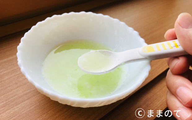 最初は赤ちゃんに食べることの楽しさを教えてあげるつもりで10倍粥から始め、様子を見ながら7倍粥、5倍粥とステップアップしていくと良いかもしれませんね。