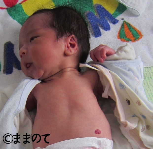 我が家の3人目の息子は、お腹に苺状血管腫がありました。生後1ヶ月ほどの赤ちゃん時代に、苺のようなアザがお腹に出ていました。血管腫は周りの皮膚より盛り上がり少し柔らかみある感じで、最初は身体を洗うときにもビクビクしていました。この後、血管腫はさらに盛り上がり大きくなりました。赤ちゃん時代は、薄着をすれば服の上からも赤色とふくらみがわかることも多く、白の肌着は着せるのをためらいました。