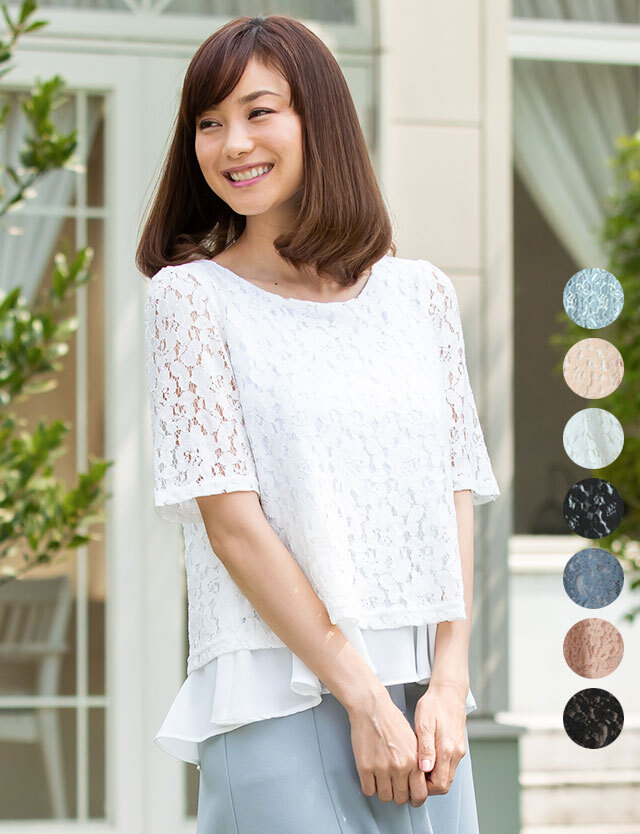 裾とバックのフリルがかわいらしいレイヤード風トップスです。首回りがすっきりしたクルーネックなので、甘くなりすぎずに着こなせます。腰回りをふわりと隠すような丈感は絶妙のバランスで、これ一枚でおしゃれ上級者の仲間入りができそうですね。