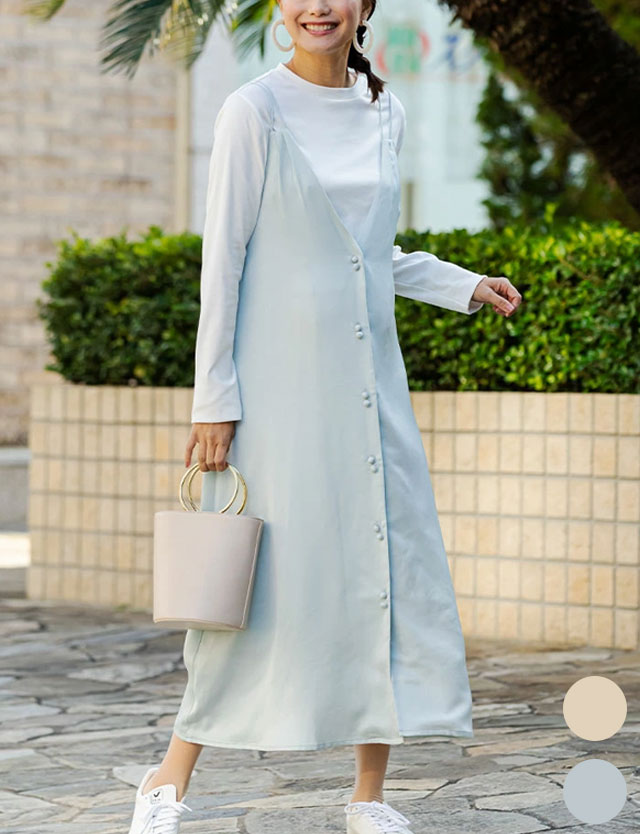 マタニティを感じさせないサテンキャミワンピース
