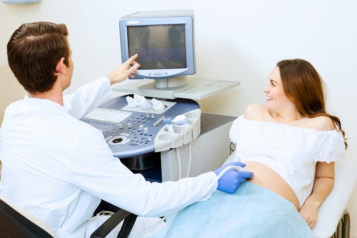 妊娠初期に、胎児の確認とともに、妊娠に影響を与える子宮筋腫や卵巣腫瘍がないかの確認をします。