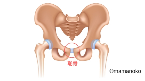 恥骨は、下腹部前面を触ると確認できる硬い骨のことです。恥骨は左右に広がる恥骨と左右の恥骨をつなぐ恥骨結合とよばれる軟骨があります。恥骨痛を訴える妊婦の多くは恥骨結合が痛い人が多いでしょう。