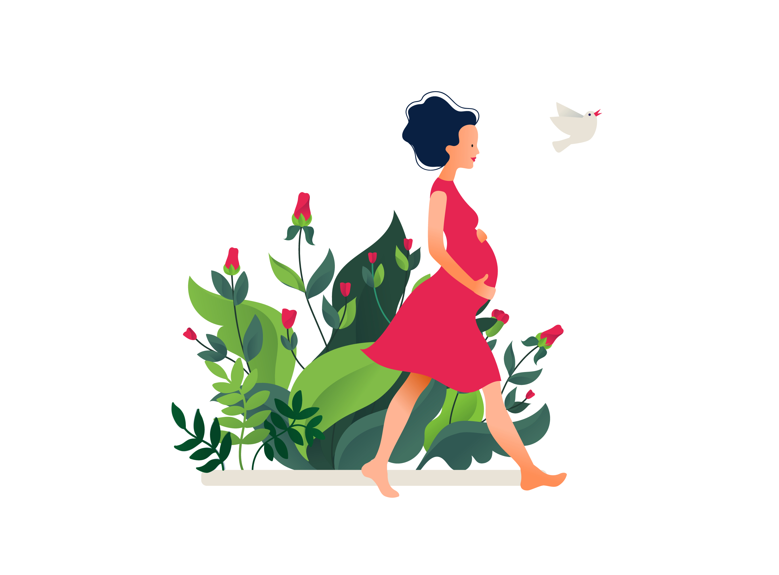 ウォーキング中は、疲れたなと思ったときに自分で適宜休憩をとることができます。お腹の赤ちゃんに、「きれいなお花が咲いているよ」「今日はお天気が良くて気持ちが良いね」といったような声をかけてあげながら、ゆっくりと自分のペースで歩いてみましょう。
