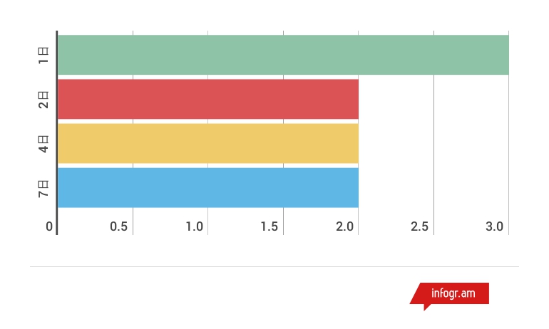 最も多かったのは、「1日」という回答でしたが、「2日」「4日」「7日」と、人それぞれ個人差があったことも見て取れますので、茶おりの出る期間として一概には言えませんね。生理の予定日に茶おりが出て、その後数日で止まってしまい、調べると妊娠していた!ということもあるそうです。