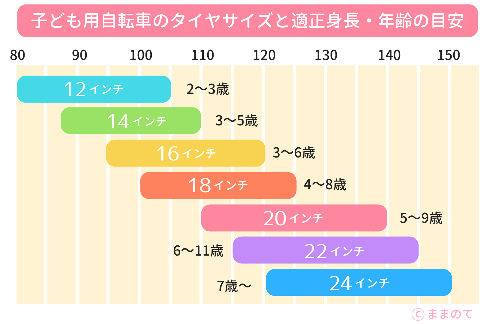 子ども用自転車のサイズと身長・年齢の目安