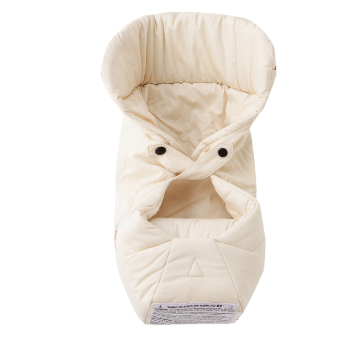 取り外し可能なクッション材が新生児や首すわり前の赤ちゃんの頭をやわらかく固定し、膝裏への布の食い込みを防ぎます。クッションの位置は変えられるのでパパと共用しやすいですよ。