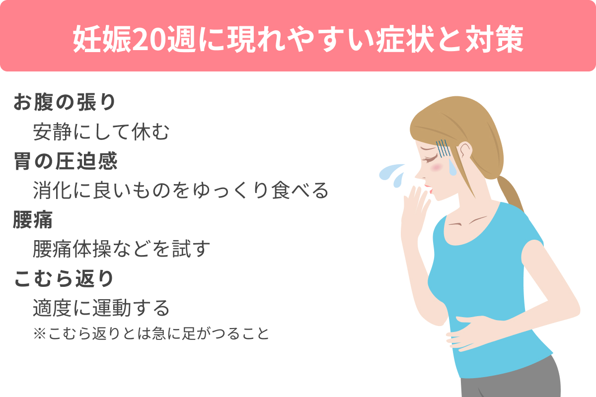 妊娠20週にあらわれやすい症状 お腹の張り、腰痛…