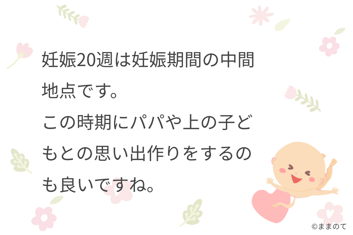 妊娠20週は妊娠期間の中間地点です。心も身体も安定している時期で、元気な胎動を感じながら、適度な運動を楽しむことができるかもしれませんね。妊娠初期には、つわりや精神的なストレスなど、つらく苦しいこともあったかもしれません。妊娠20週を迎えて、ほっとしているママも多いでしょう。