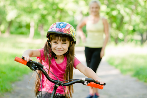 自転車事故の約6割は頭部のケガといわれています。子どもは大人に比べて頭が重く、転倒した時に頭部をケガしやすいものです。子どもの安全を守るためにも、自転車に乗るときはヘルメットをしっかり着用させましょう。