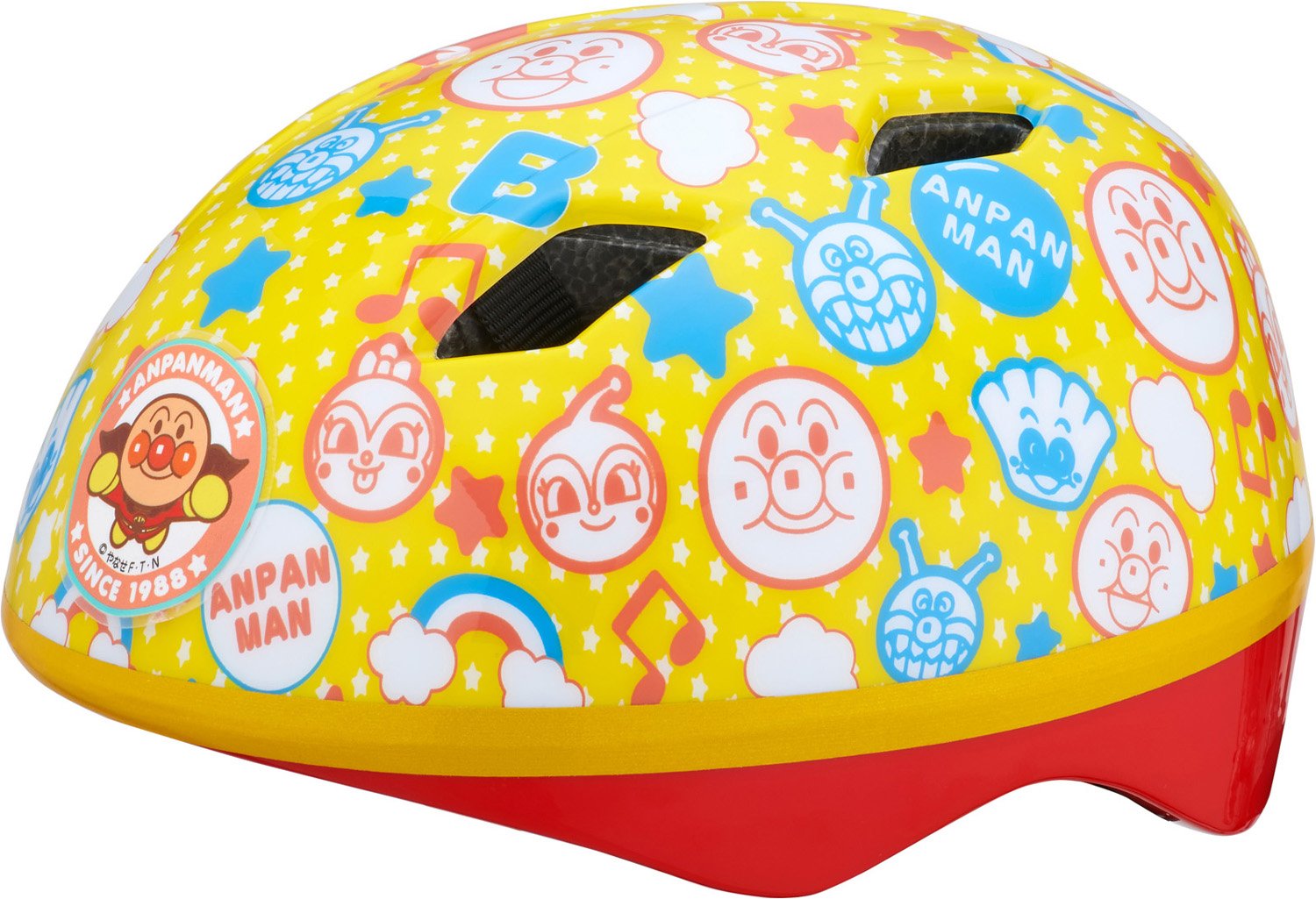カラフルなデザインがかわいいアンパンマンのヘルメットです。あごひもはワンタッチバックル式なので、ひとりでかぶりやすいですよ。内装パッドは取り外して洗うことができるため、お手入れは簡単です。表面には、車などのライトの光に反射するリフレクターが付いています。
