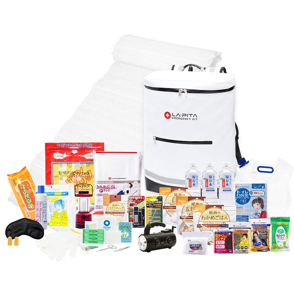 「LA・PITA」の「防災セット」は、あらゆる災害で被災した場合に家族2人を守ることができる防災グッズのセットです。天然アルカリの保存水は7年間備蓄が可能です。着替えやタオル、常備薬などを追加して備えてはいかがでしょうか。