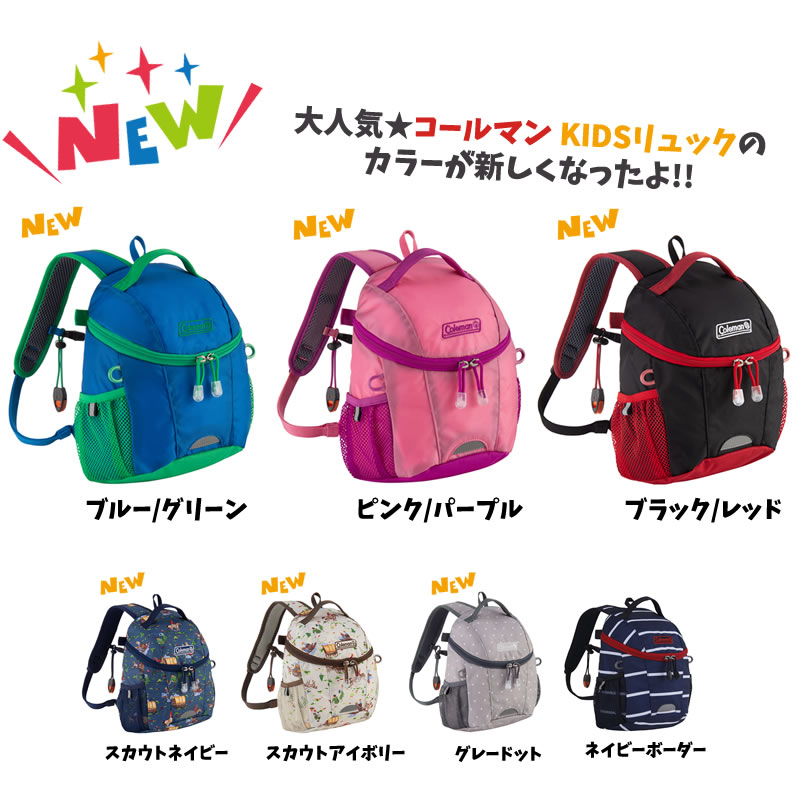 アウトドア用品で定番「コールマン」のキッズリュックです。とにかく丈夫でシンプルなのがポイントです。チェストコードと反射板がついており、小さなホイッスルまでついています。実力のある人気ブランドのリュックということで、安心して使える点が良いですね。同素材で大人用の製品もあり、ママはもちろんパパともお揃いにできます。コロンとしたフォルムもかわいらしいです。