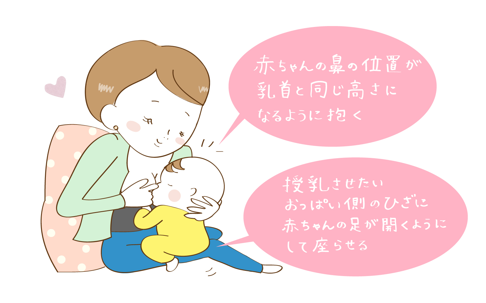 縦抱きで授乳することで、赤ちゃんの顔の高さとおっぱいの高さの差が少なくなるため授乳クッションがなくても授乳しやすくなります。また、横抱きで授乳するよりも縦抱きで授乳するほうが赤ちゃんが乳首をくわえやすい形になるため、母乳を飲む量が増えることもあります。